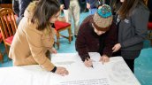 Manifestantes quisieron desplegar lienzo frente a Piñera y fueron detenidos ipso facto