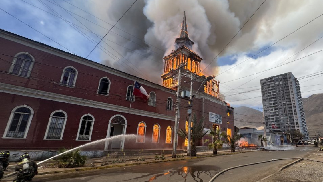 Incendio de la histórica Iglesia San Francisco de Iquique dejó al menos 10 heridos
