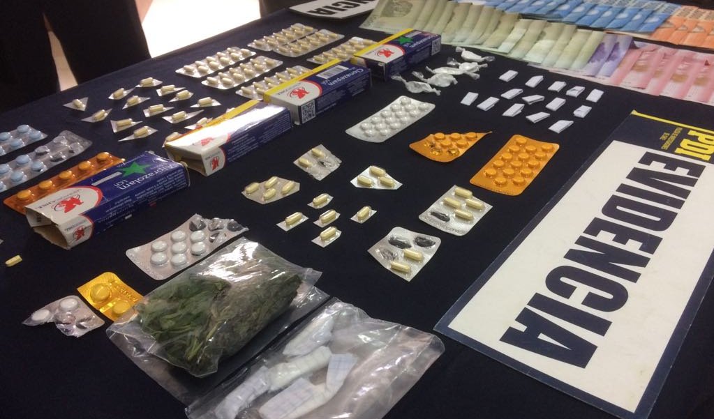 Dentro de lo incautado se encontró cocaína, marihuana, 131 comprimidos de Clonazepam, 20 de Alprazolam, 15 de Diazepam y cerca de 450 mil pesos en efectivo.