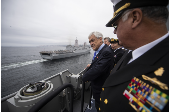 Con la llegada del Presidente de la República @sebastianpinera culmina el arribo de las autoridades para dar comienzo a nuestra #RevistaNavalInternacional #BicentenarioArmada pic.twitter.com/SmGhcpG6km