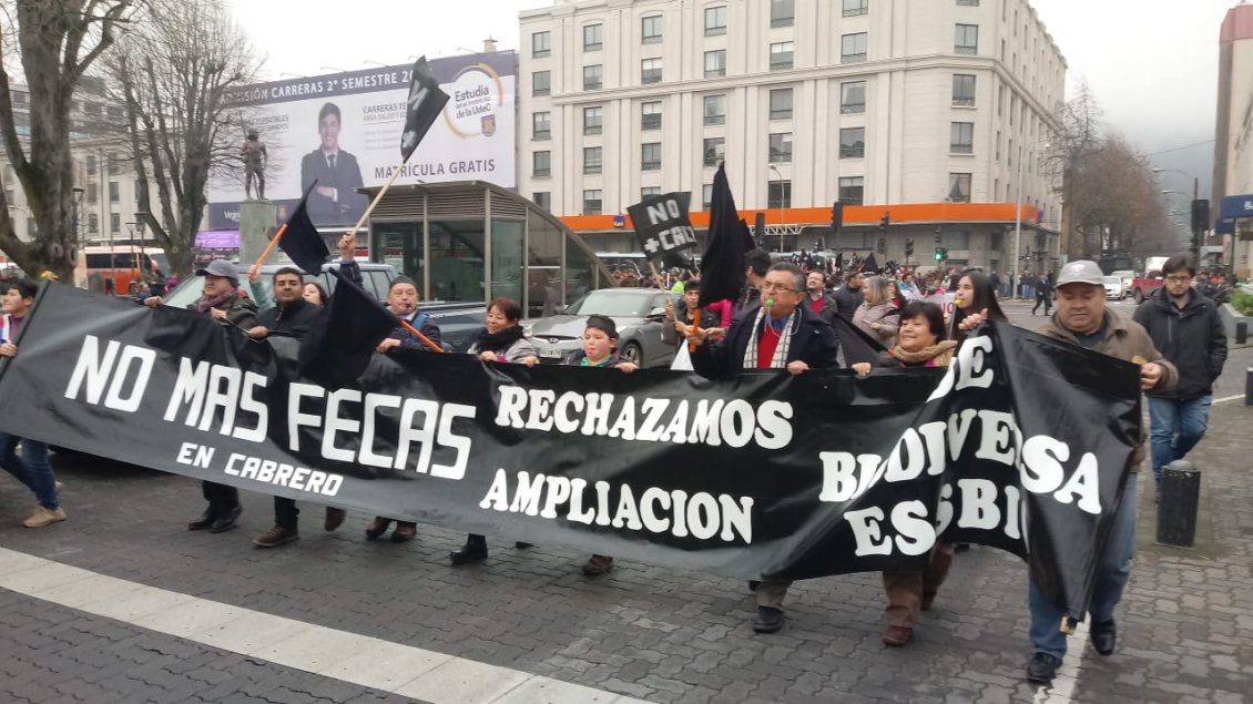 Mario Gierke, alcalde de Cabrero, encabezó una protesta en Concepción sentado en un water contra ampliación de planta de lodos orgánicos de Biodiversa, Essbio. El Servicio de Evaluación Ambiental entregó una recomendación favorable para la ampliación en 127 metros cuadrados de la planta en la que de las actuales 28 pasará a procesar 120 toneladas de lodos que son tratados en la comuna de la región del Biobío. Esto podría generar más moscas, ratones y malos olores acusan los vecinos.