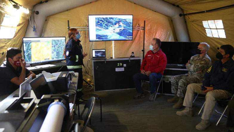 El puesto de mando revisa las primeras imágenes. (Foto: Cristofer Espinoza/Cooperativa Regiones)