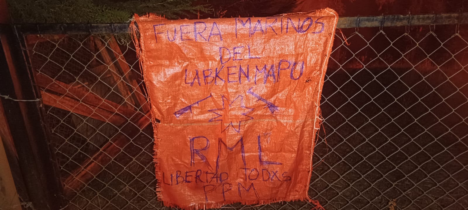 En el lugar se halló un lienzo exigiendo la salida de la Armada de Chile de ese sector en la Provincia de Arauco.