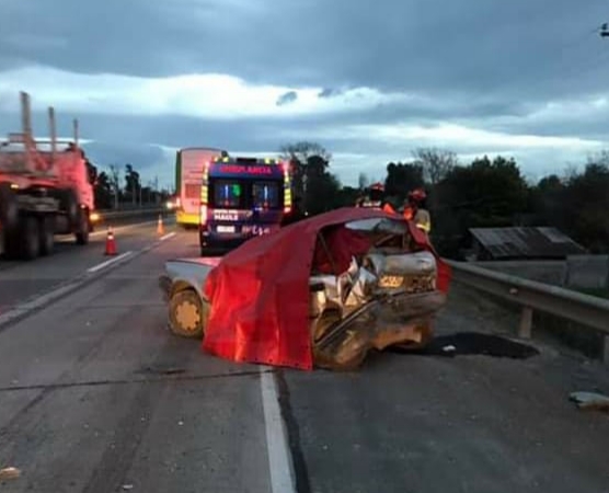 La colisión entre un auto y un bus ocurrió en el kilómetro 235 de la Ruta 5 Sur.