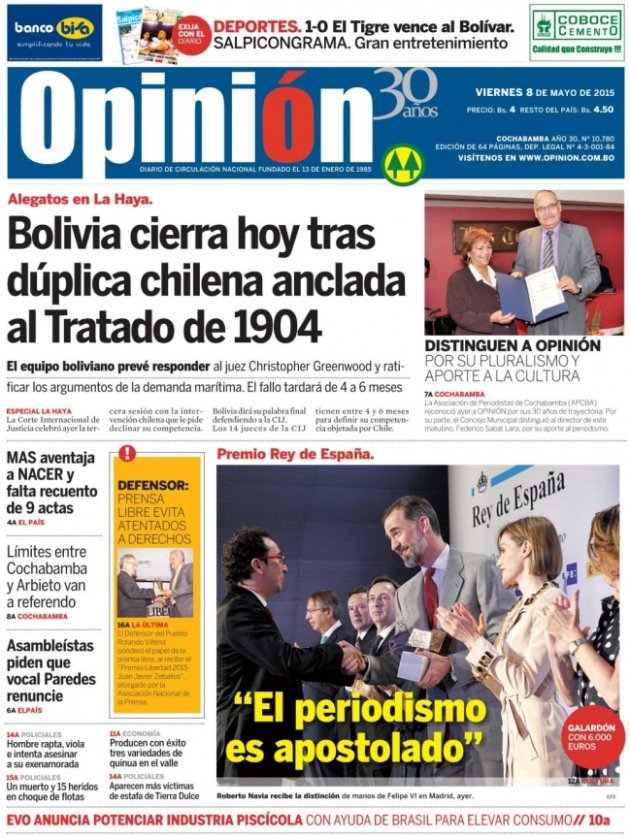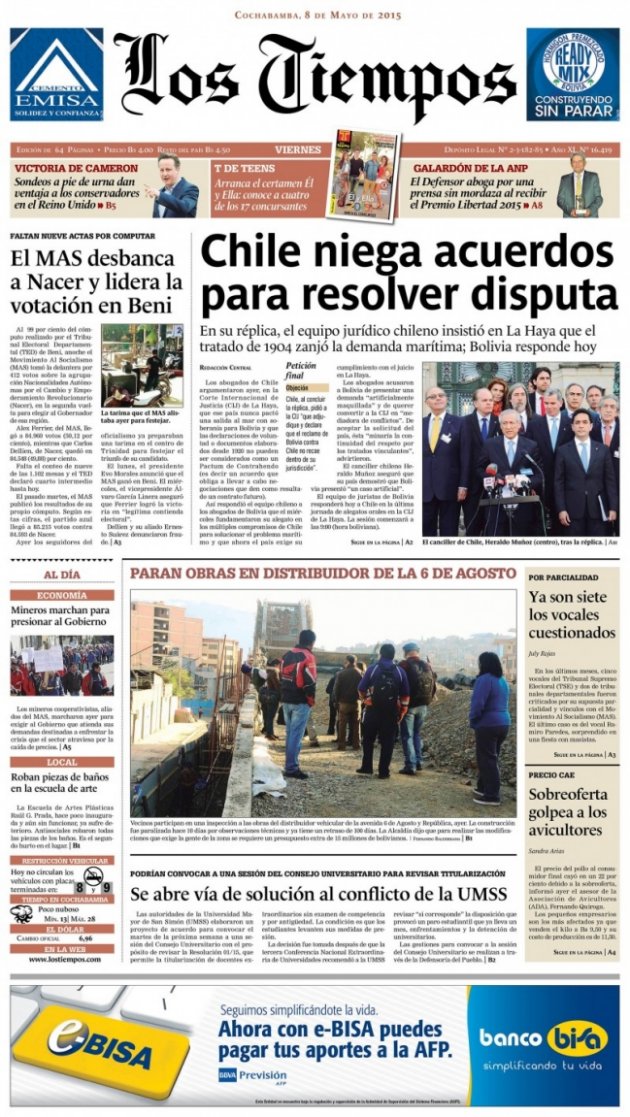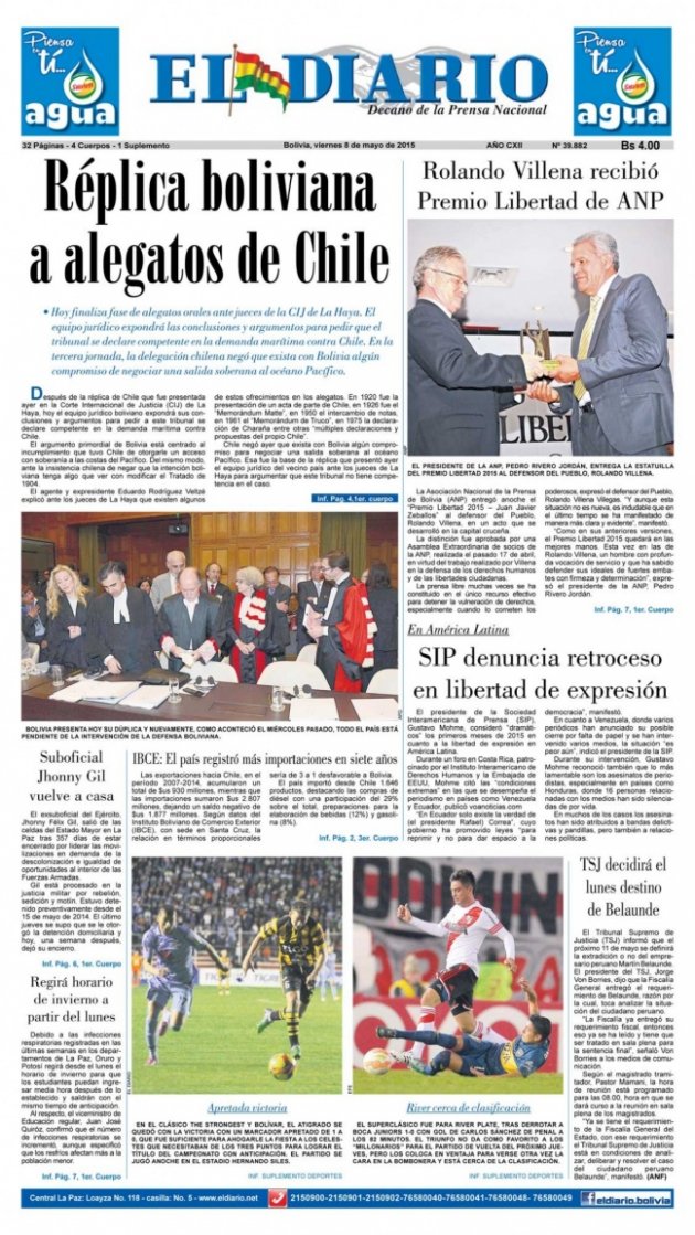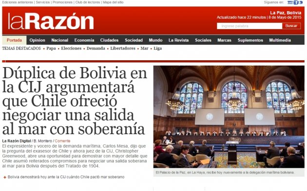 | El diario boliviano Los Tiempos publica este lunes un especial referido al litigio en la CIJ.