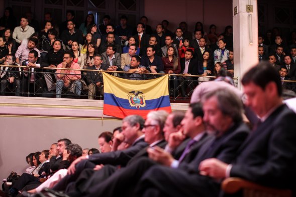 En medio de protestas, el Presidente del Ecuador, Rafael Correa, recibió el grado de Doctor Honoris Causa por parte de la Universidad de Santiago, en consideración a la reforma que ha impulsado con el propósito de mejorar la calidad de la educación básica, secundaria y superior en su país.