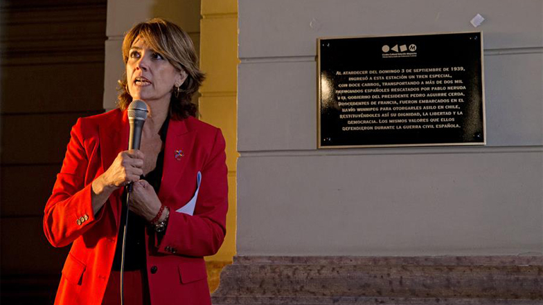 La ministra Dolores Delgado participó este lunes en un evento para situar una placa conmemorativa en la Estación Mapocho. (Foto: EFE)