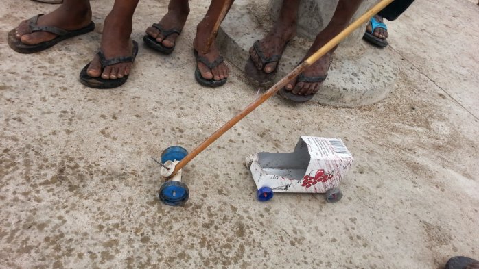 Valiéndose de palos, tapas de bebida o cajas de vino -principal exportación de Chile a ese país- las calles de Mozambique se llenan de improvisadas "camionetas" creadas por niños. Mira las imágenes captadas por el enviado especial Rafael Pardo.