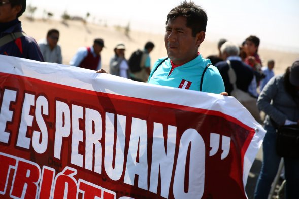 Un grupo de peruanos nacionalistas que pretendían realizar una marcha hasta la zona del denominado