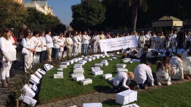 Un masivo grupo de "Mujeres de Blanco" llegaron este miércoles hasta el Congreso para manifestarse en contra del proyecto que busca despenalizar el aborto en tres causales.