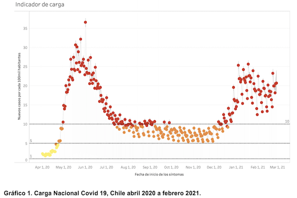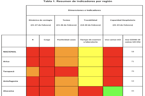 El equipo ICovid Chile -iniciativa liderada por la Universidad de Chile, la Pontificia Universidad Católica de Chile y la Universidad de Concepción- presentó este jueves su informe número 30, que alerta sobre un aumento considerable de contagios y niveles críticos de ocupación de camas UCI (sobre el 85 por ciento) en muchas regiones del país, en este comienzo de marzo.