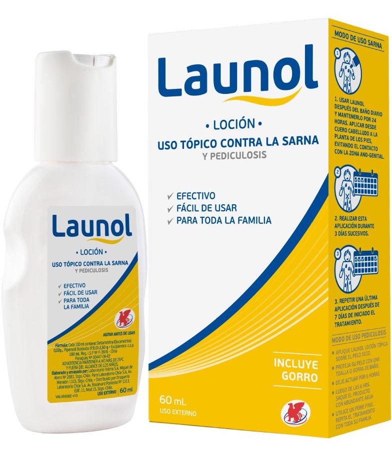 "Launol Loción es producto farmacéutico que contiene deltametrina y piperonil butóxido en su formación, cuya indicación terapéutica es el tratamiento de la pediculosus (infestación de la piel por piojos) y la escabiosis (sarna)", reseñó la nota del instituto.