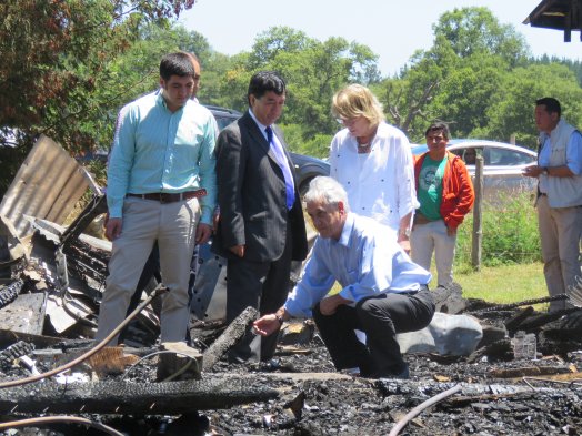 El ex Presidente Sebastián Piñera visitó este martes la ciudad de Cañete para reunirse con la familia de José Retamal, el guardia que murió quemado en un ataque incendiario, jornada en la que enfrentó contramanifestaciones.
