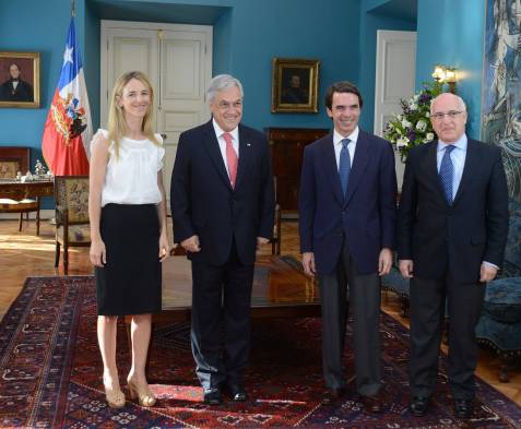 El Presidente de la República, Sebastián Piñera, recibió en audiencia en el Palacio de La Moneda al ex presidente del Gobierno español, José María Aznar.