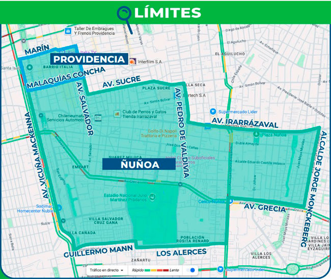 El perímetro que involucra la intervención comprenderá entre las calles Marín, Sucre, Av. Irarrázaval y Dublé Almeyda por el norte; Guillermo Mann, Los Alerces y Av. Grecia por el sur; Av. Salvador, Av. Pedro de Valdivia, Jorge Monckeberg por el oriente; y Av. Vicuña Mackenna por el poniente.
