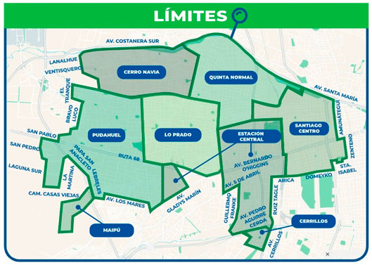 El perímetro afectado comprenderá entre las calles Av. Costanera Sur y Av. Santa María por el norte, Amunátegui y Zenteno por el oriente; Santa Isabel, Domeyko, Arica, Av. Gladys Marín, Av. Los Mares y Camino Casas Viejas por el sur; y Lanalhue, Ventisquero, El Tranque, Bravo Luco, San Pedro y Laguna Sur por el poniente.