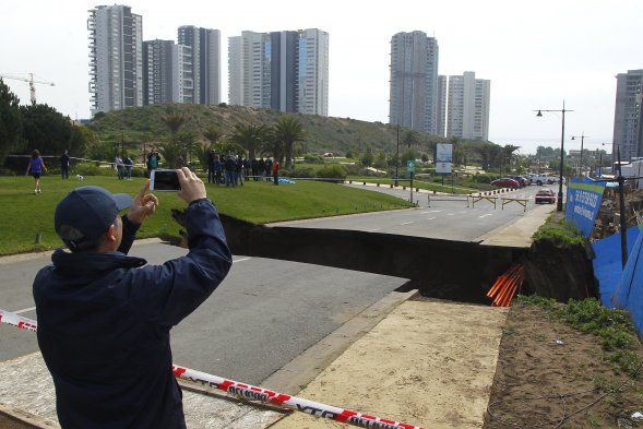 Rotura de matriz provocó gran socavón en Concón Publicado: Martes, 15 de Agosto de 2017 10 de 13 La rotura de una matriz frente a las obras del edificio Marina de Montemar de Concón causó un gran socavón en la mañana de este martes. La rotura de una matriz frente a las obras del edificio Marina de Montemar de Concón causó un gran socavón en la mañana de este martes.ATON