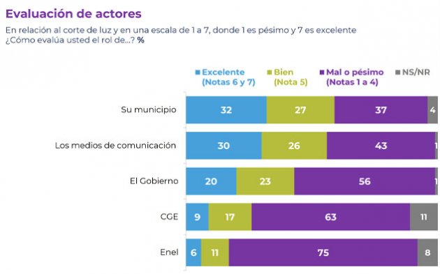 | Ante la emergencia, el 75% evaluó negativamente el rol de Enel, el 63% a CGE, el 56% al Gobierno y el 37% a su municipio