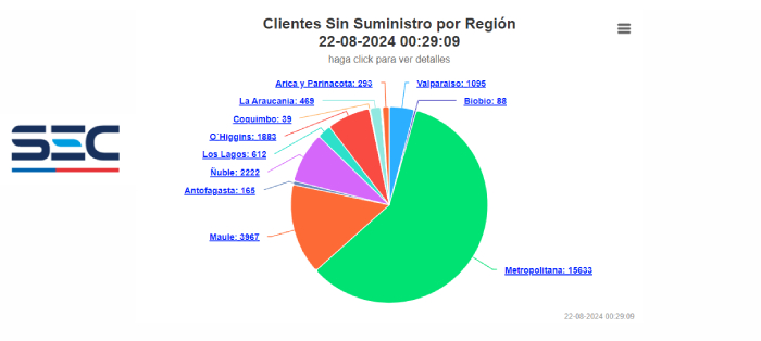 La región más afectada es la Metropolitana, seguida por el Maule, Ñuble y O'Higgins, según el reporte de la SEC.