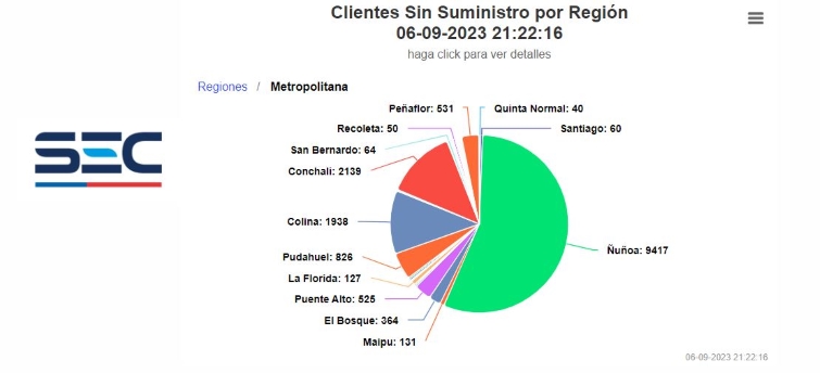 Más de 16 mil clientes se encuentran sin energía en la Región Metropolitana, producto del sistema frontal que ha afectado durante este miércoles a la capital.