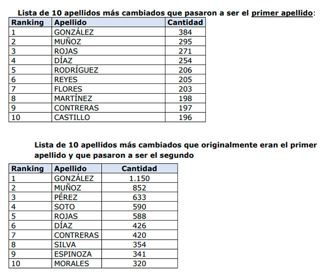 Un total de 28.228 personas cambiaron el orden de sus apellidos en el Servicio de Registro Civil e Identificación, esto tras un año de la implementación de la Ley 21.334 que facultó a la entidad estatal para modificar el orden de los apellidos.