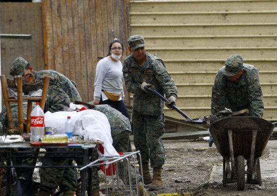 Personal de las Fuerzas Armadas se encuentra reforzando su contingente en la Región de Coquimbo, donde nuevos equipos, vehículos y personal se unen a las tareas de despeje y auxilio de los damnificados tras el terremoto del miércoles.