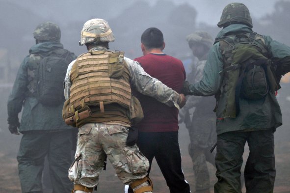 Infantes de marina chilenos y estadounidenses realizan ejercicios militares en la playa de Pichidangui en el marco del Partnership of the Americas (POA) 2014, ante el simulacro de un terremoto 8,8 grados Richter y posterior tsunami.