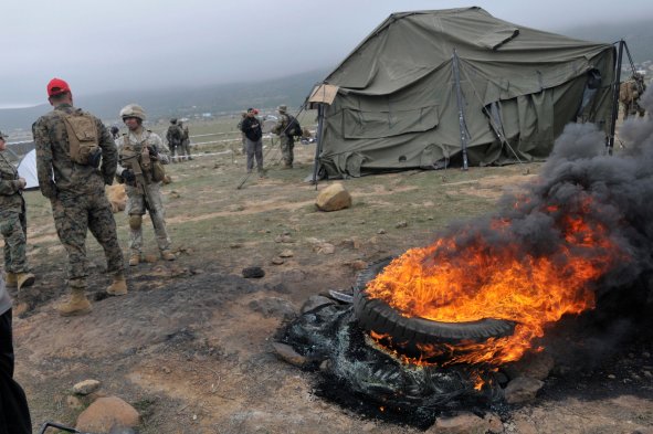 Infantes de marina chilenos y estadounidenses realizan ejercicios militares en la playa de Pichidangui en el marco del Partnership of the Americas (POA) 2014, ante el simulacro de un terremoto 8,8 grados Richter y posterior tsunami.