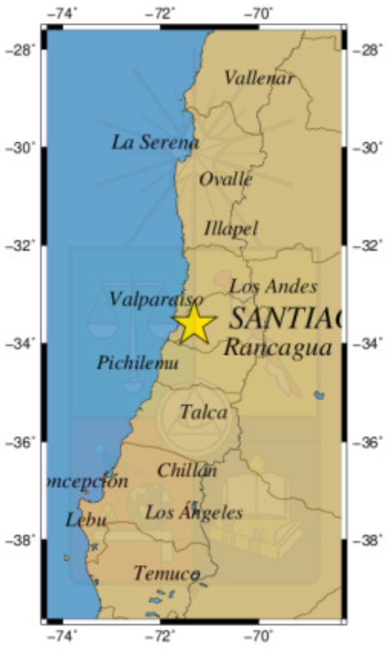 El epicentro estuvo ubicado 13 kilómetros al noroeste de Melipilla y se produjo a 63 kilómetros de profundidad.