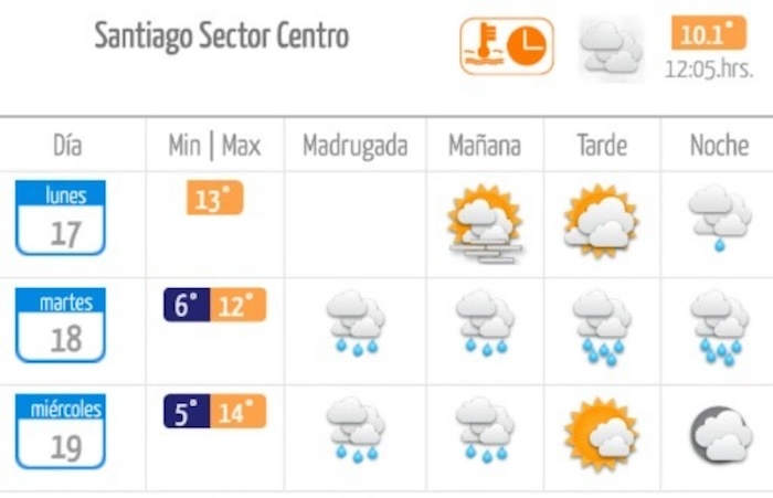 La DMC precisó que el evento traerá lluvias normales a moderadas en ambas regiones, con un isoterma cero en torno a los 2.000 metros, y sin rachas de fuertes vientos, que caracterizó al sistema frontal pasado.