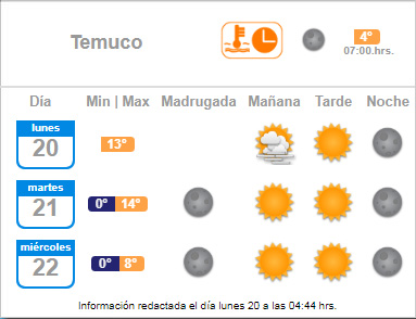 Pronóstico para Temuco, capital de la Región de La Aruacanía.