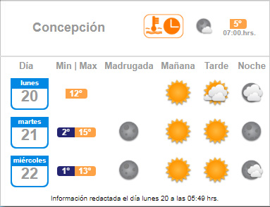 Pronóstico para Concepción, capital de la Región del Biobío.