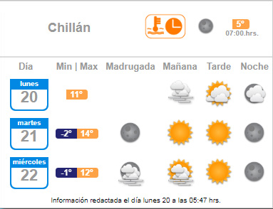 Pronóstico para Chillán, capital de la Región de Ñuble.