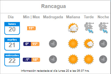 El pronóstico para Rancagua, capital de la Región de O'Higgins.