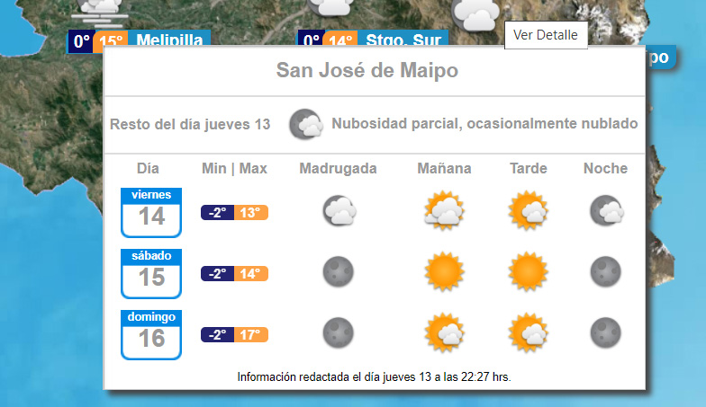 Se esperan hasta dos grados bajo cero en algunos sectores para sábado y domingo, e incluso a partir de este viernes en San José Maipo, según Meteorología.