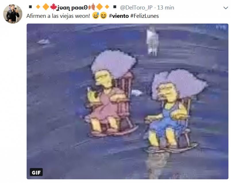 Varios usuarios de redes sociales se tomaron con humor el sistema frontal que afecta a la zona centro-sur de Chile. Por ello, no tardaron en llegar las bromas contras los santiaguinos por sus reacciones al fuerte viento, que ha causado caídas de árboles, muros, vidrios y cortes de luz. De hecho, la palabra #viento se convirtió en tendencia de Twitter.