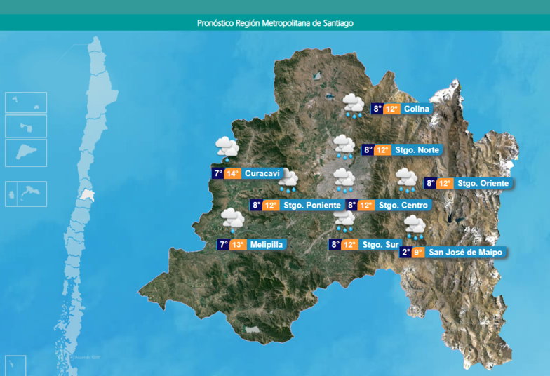 La Dirección Meteorológica de Chile pronostica lluvia para la noche de este sábado y madrugada del domingo en la Región Metropolitana.