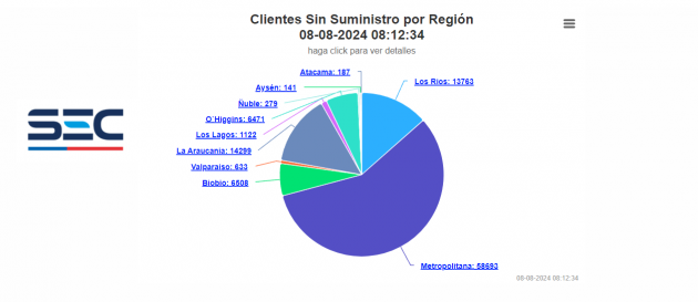 08:13 - | #CooperativaContigo Hasta las 8 de la mañana, 102.236 hogares seguían sin luz en todo Chile, 58.693 de ellos en la Región Metropolitana, según la SEC