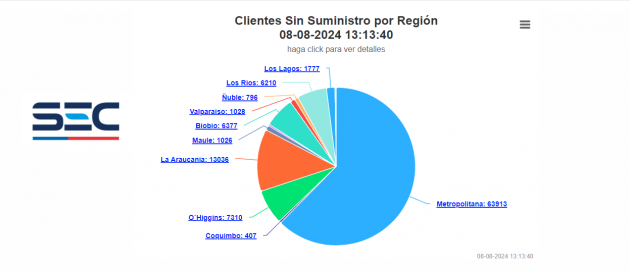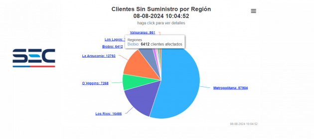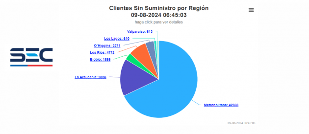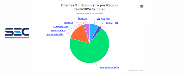 09:26 - | En todo el país, según la SEC, hay 63.516 hogares sin electricidad, 42.882 en la Región Metropolitana