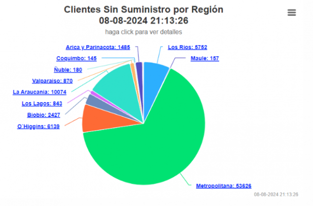 21:16 - | La Región Metropolitana cuenta con más de 50 mil clientes sin suministro eléctrico, según el reporte de la SEC
