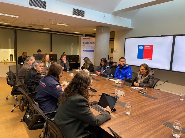 09:24 - | El subsecretario del Interior, Manuel Monsalve; el ministro de Energía, Diego Pardow; Marta Cabeza, superintendenta de Electricidad y Combustibles; y la directora (s) de Senapred, Alicia Cebrián, y otras autoridades participan en reunión técnica por cortes de luz (Foto: Subsecretaría del Interior)