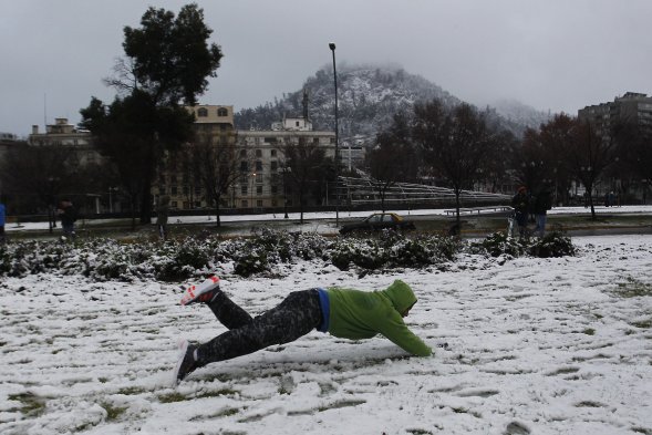 Santiago y sus alrededores amaneció este sábado cubierto por una capa de nieve. El fenómeno que es más común en sectores precordilleranos de la capital se extendió hacia el centro y se vieron lugares como Plaza Baquedano, el Palacio de La Moneda, el cerro Santa Lucía y el Estadio Nacional bajo la blanca capa.
