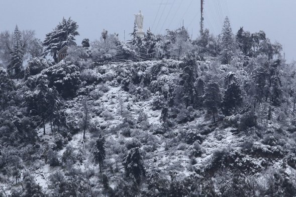 Santiago y sus alrededores amaneció este sábado cubierto por una capa de nieve. El fenómeno que es más común en sectores precordilleranos de la capital se extendió hacia el centro y se vieron lugares como Plaza Baquedano, el Palacio de La Moneda, el cerro Santa Lucía y el Estadio Nacional bajo la blanca capa.