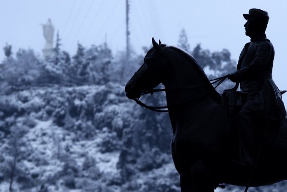 Santiago y sus alrededores amaneció este sábado cubierto por una capa de nieve. El fenómeno que es más común en sectores precordilleranos de la capital se extendió hacia el centro y se vieron lugares como Plaza Baquedano, el Palacio de La Moneda, el cerro Santa Lucía y el Estadio Nacional bajo la blanca capa.