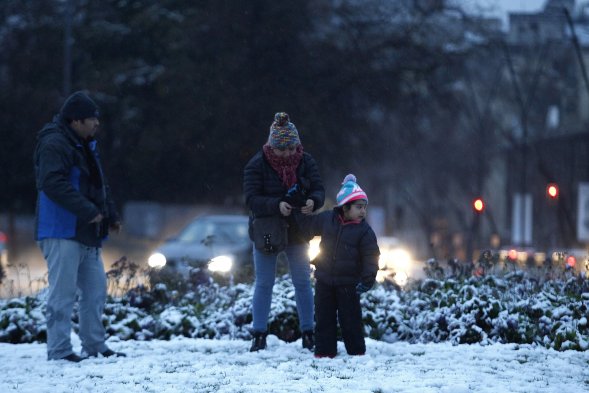 Santiago y sus alrededores amaneció este sábado cubierto por una capa de nieve. El fenómeno que es más común en sectores precordilleranos de la capital se extendió hacia el centro y se vieron lugares como Plaza Baquedano, el Palacio de La Moneda, el cerro Santa Lucía y el Estadio Nacional bajo la blanca capa.