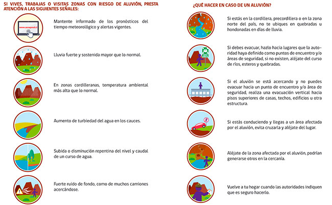 Por ello, identificar estas seis señales es clave y frenter a cualquiera de ellas debes alejarte de esteros, ríos y quebradas.