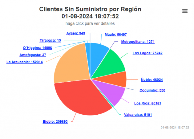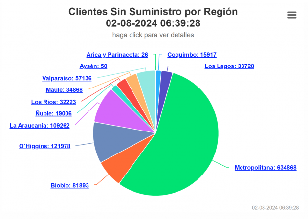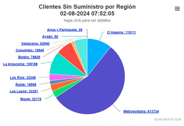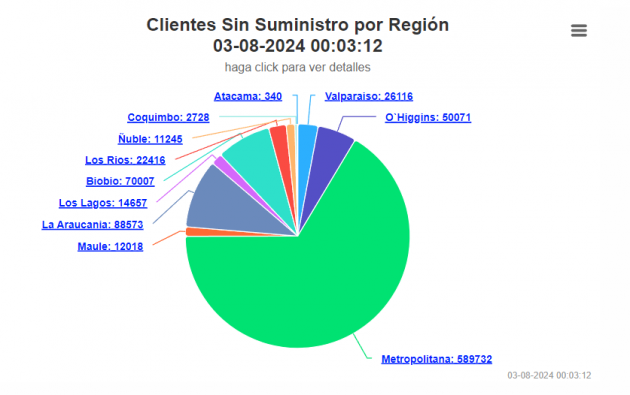 | Enel informó que se ha restablecido el suministro de más de 420 mil clientes, lo que representa una recuperación del 52,9% respecto del peak de la emergencia, la madrugada del viernes, cuando 794 mil hogares se vieron afectados