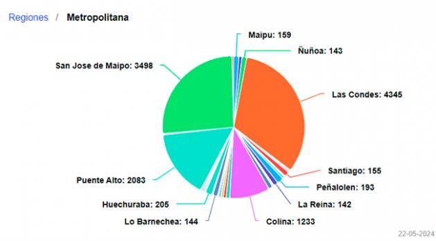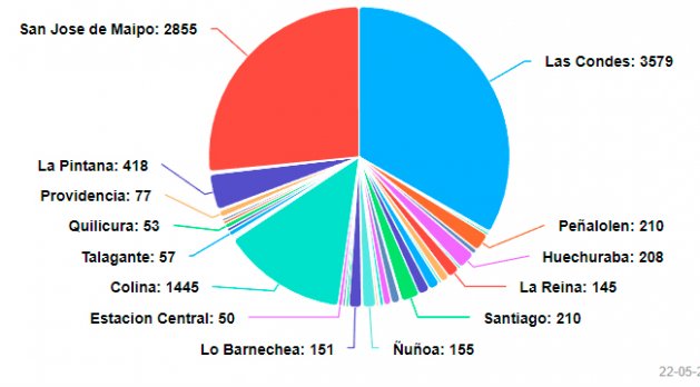 19:18 - | Las comunas más afectadas en la capital son Quilicura (9.094), Lampa (6.906) y San Bernardo (1.804)
