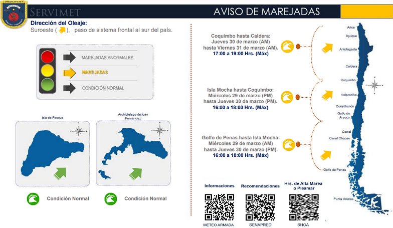 Undécimo aviso de marejadas del año: Entre Caldera y el Golfo de Penas