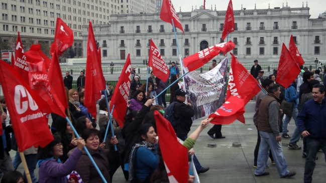 Trabajadores de Chile marchan frente a La Moneda pic.twitter.com/OUqzoN7jCu